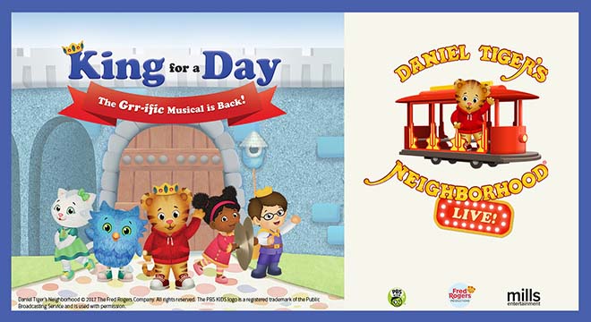 In Daniel Tiger’s Neighborhood LIVE! King For a Day, audiences “ride along” on an exciting adventure as Daniel learns what it takes to be king. Produced by Fred Rogers Productions and Mills Entertainment, the engaging, full-scale musical production is filled with magical moments and sing-along fun, and features favorite characters from the Neighborhood of Make-Believe, It’s a “royally” good time for the whole family. For more info, visit danieltigerlive.com